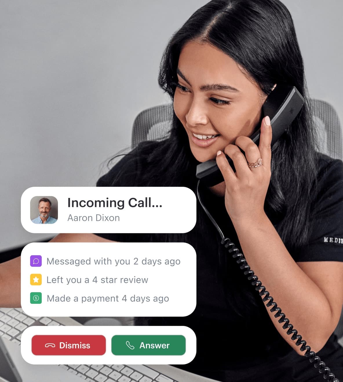 Podium automatically captures every interaction with a customer in a single thread–so you have the details of each call, text, payment and more at your fingertips.