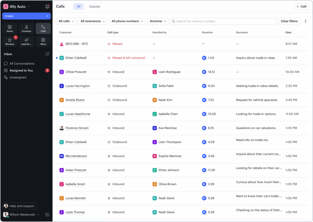 A refreshed Call History layout reduces friction when reviewing calls by making key details easier to scan at a glance—from who called and when, to how the call was handled, routed, and summarized. Infinite scroll and hover states reveal additional metadata as needed for faster call review.