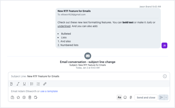 Format email messages as you compose them in Podium using the formatting toolbar (click the “Aa” icon). With this update, you can bold, italicize, and underline text, and create bulleted and numbered lists to improve readability and keep important information from getting missed.