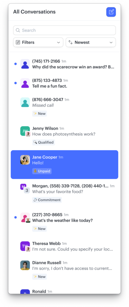 Conversation previews are now more readable and display the avatar of the assigned user so you know who is handling the conversation.