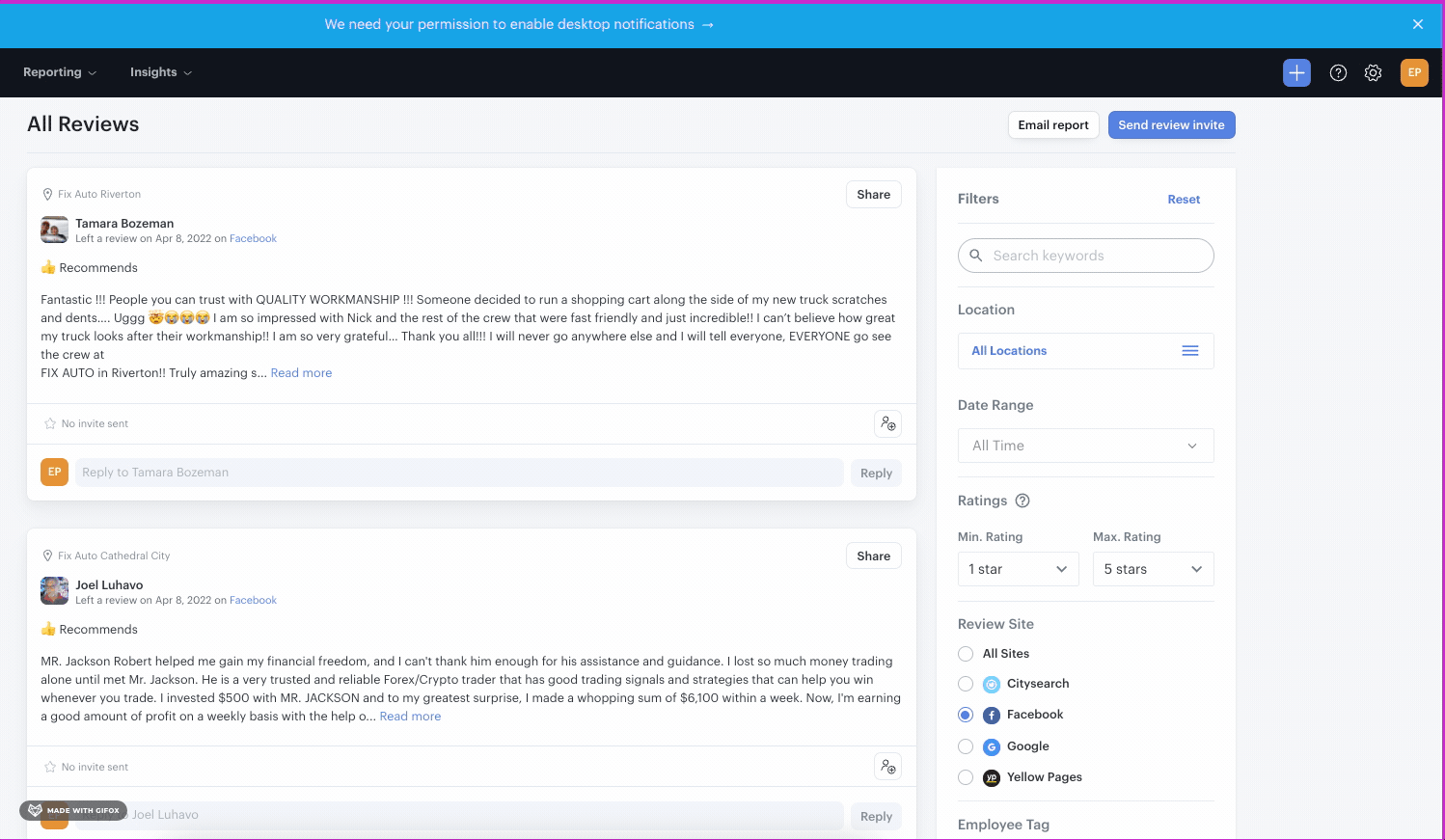 Reviews Profile Pictures: We’ve pushed out new functionality that enables Podium to find and pull in Facebook profile pictures in addition to reviews.
