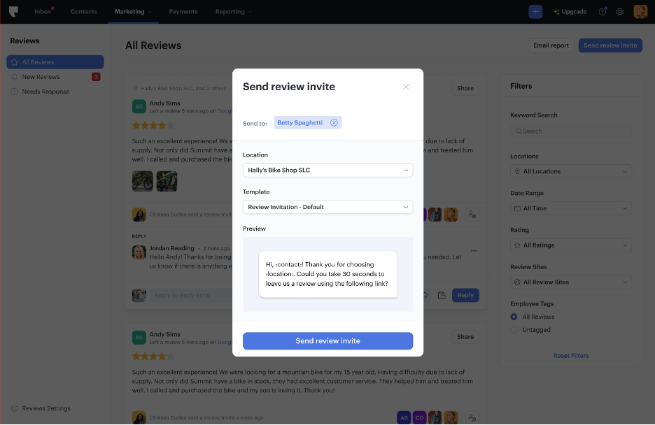 First, we have added new functionality to send review invitations from anywhere within the Podium platform. This change makes sending reviews almost effortless.