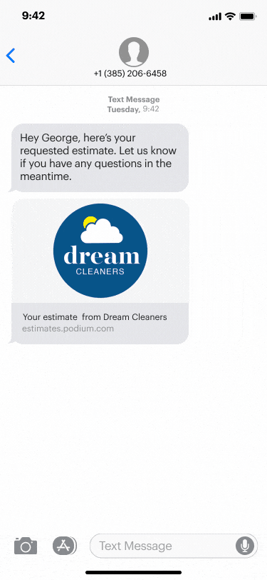 Many of our customers rely on estimates and quotes as a part of their customer experience. Now you can create, send, and track estimates from within Podium. No more need for an external system of record, spreadsheet, or pen and paper to track the status of quotes, and customers can easily view and approve the quote from their mobile device.